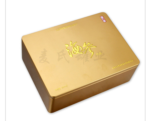 大連海參包裝盒定制,新穎的異形造型,金色的色調設計,彰顯產品的大方,符合消費市場的需求。