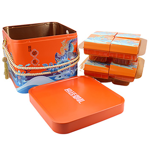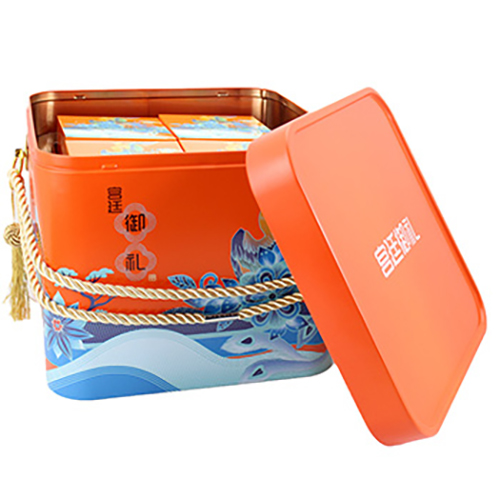 這款方形紅蓋手提蛋卷錦繡華禮盒鐵盒的尺寸為235*235*210mm,為了順應(yīng)多樣化的市場(chǎng)包裝需求,這款茶葉馬口鐵盒可做成心形、正方形、橢圓形、車形、書(shū)本形等異形造型。