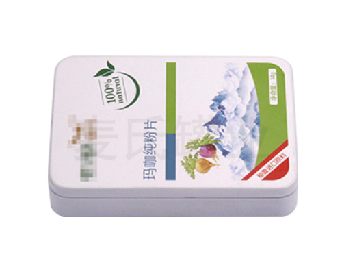 這款翻蓋瑪咖人參壓片糖果鐵盒,是醫藥保健包裝中常見的一款壓片糖金屬包裝產品,鐵盒材質選用國產一級0.23mm馬口鐵制成,根據客戶印刷需求,采用單面四色+一專色印刷工藝,外過光油,內過金油,強烈的光澤感官效果,時刻刺激消費者目光,促進產品銷售。