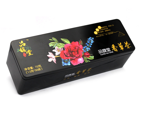 此款方形菊皇玫瑰茶鐵盒為經典的長方形造型設計,145mm*95mm*66mm尺寸,可包裝100g不等的菊皇玫瑰茶產品,能滿足大容量產品包裝需求。為了順應多樣化的市場包裝需求,此款方形菊皇玫瑰茶鐵盒可做成正方形、心形、圓形、橢圓形等眾多造型。