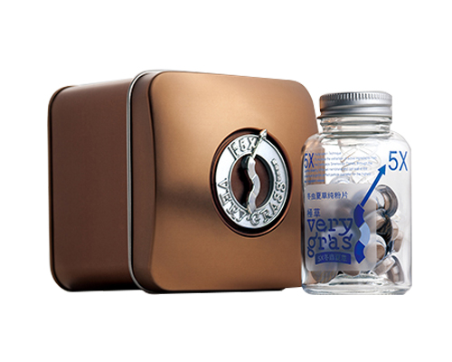 這款蟲草含片鐵皮盒采用復合片式天地蓋結構,可配套金屬產品標牌,大氣上檔次,鐵盒內部附帶18或24支亞克力包裝瓶以及EVA、PET內襯,鐵盒表面外過啞光油,內過光油,金屬質感強烈的同時,還提升鐵盒的硬度。鐵盒做工精細,非常適合當做海參禮盒贈送給親朋戚友,領導同事。而這款蟲草含片鐵皮盒具有耐蝕性、防潮性等優點,印刷工藝更為一絕,得到眾多保健食品企業的一致好評!