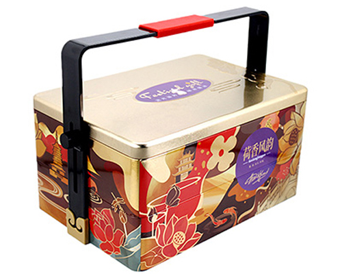 精美方形食品馬口鐵盒_中秋送禮雙層手提月餅鐵盒包裝定做工廠(chǎng)