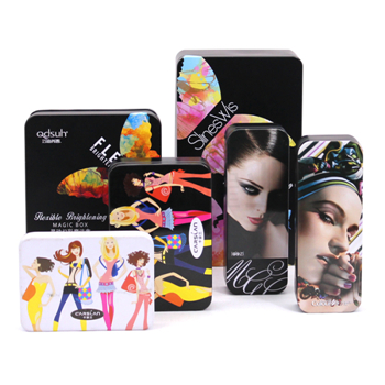 這些彩妝鐵盒子選用冷軋鍍錫0.23mm馬口鐵打造而成,選用單面四色印刷手藝,UV油墨印刷材質,其特點在于快干性強,墨點少,在金屬表面上表現出的吸附。外過光油,在提升光度,美化外觀的同時,也對墨層起到了防護的作用。麥氏罐業可按照客戶提供的設計版面和工藝要求進行鐵盒制作,生產線質檢-包裝線質檢-成品線質檢,三道工序保證您的產品合格;三千多套鐵盒鐵罐模具能滿足您的個性化需求。