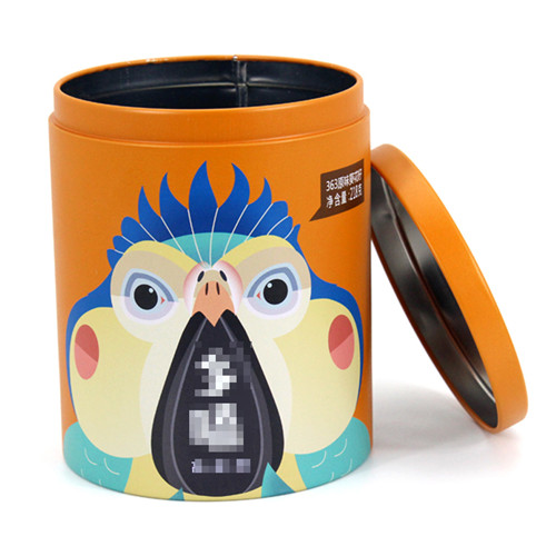 該款卡通圓形葵花籽年貨鐵罐采用0.23mm鍍錫馬口鐵制作,客戶可根據自身需求,選擇0.23-0.28mm的馬口鐵/磨砂鐵制作,若選擇磨砂鐵制作鐵盒可使得材質表面有強烈的沙礫效果,在觸感上會變得更加有感覺。