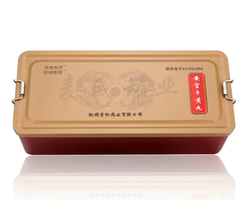 六邊形牛黃丸鐵盒,精致中藥丸包裝盒,是用來(lái)包裝存放安宮牛黃丸的一種金屬包裝鐵盒,印刷美觀,麥?zhǔn)瞎迾I(yè)擁有多套牛黃丸鐵盒現(xiàn)摸,是廣大中藥丸包裝盒生產(chǎn)廠家。