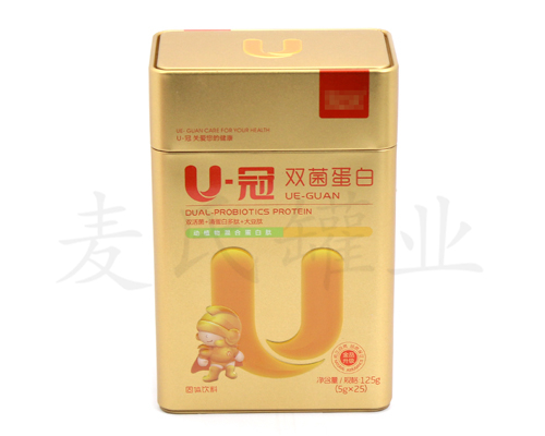 很多平蓋益生菌固體飲料鐵盒上都有臺(tái)階,臺(tái)階的功能在于方便同一尺寸的鐵盒相互重疊,這非常方便的商場(chǎng)貨架上堆放產(chǎn)品并且有效利用貨架空間。這款益生菌固體飲料鐵盒,采用國(guó)產(chǎn)一級(jí)馬口鐵為基材,專色印刷工藝。想了解更多嬰幼兒保健品鐵盒包裝,請(qǐng)致電:186-7632-2818,清遠(yuǎn)麥?zhǔn)瞎迾I(yè)恭候您的到來(lái)!