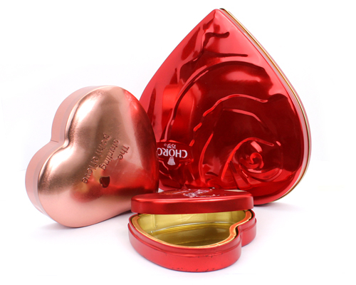 此款心形巧克力鐵盒結構為三片罐,有蓋、身、底裝配而成。蓋子為內卷線縮口蓋,扣底結構。鐵盒材質都是采用0.23mm鍍錫馬口鐵制作,盒形是目前為歡迎的食品金屬包裝產品之一,為了更好地適應市場需求,可選擇磨砂進行制作。