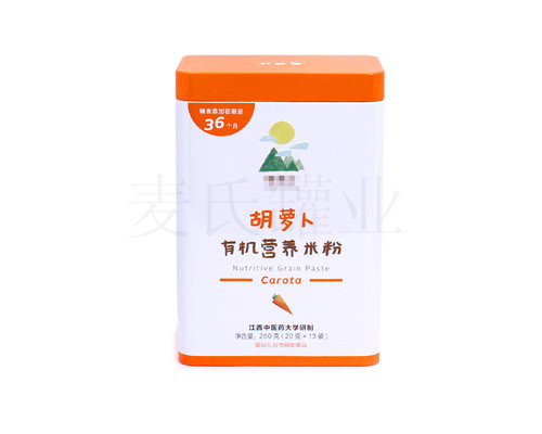 嬰幼兒小米營養米粉馬口鐵盒定制的同時,我司為您提供一站式鐵盒包裝服務,包括提供鐵盒所用的內托、手提、鎖扣、禮品袋、標牌、真空袋、塑膠蓋等配件產品。省時省力為客戶節約鐵盒生產時間,減少生產制作成本。